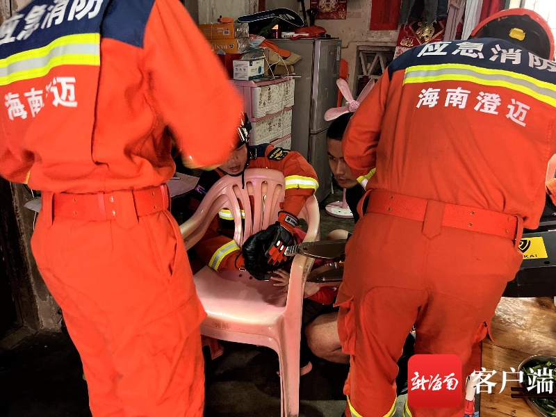5月17日中午,澄迈金江镇金江大桥旁河边巷一民房内,有一名男孩头部不慎卡在塑料凳子里无法取出,遂求助消防。当天12时07分,澄迈消防救援大队接到群众报警后立即调派金江站消防救援人员赶赴现场处置。