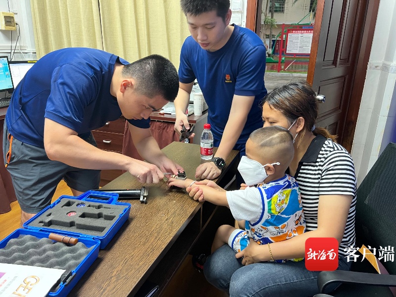 5月23日下午,澄迈一男孩左手无名指被一枚金属螺丝帽卡住,不仅无法动弹,在关节处还出现了肿胀,他的家人尝试用洗涤剂、肥皂水等方法都无法取下,只能求助消防。